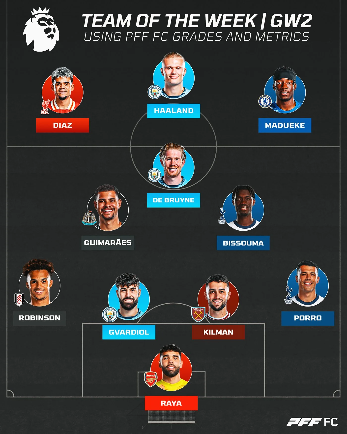 PFF FC's Premier League Team of the Week for Gameweek 2.